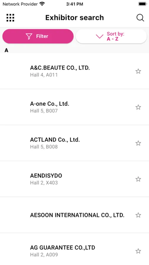 Exhibitors: search for companies and products, filter and sort functions available, also find contact persons ad exhibitor events. Add Photos and Notes to an exhibitor and share them.