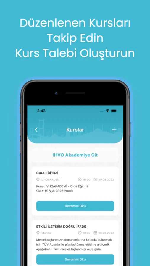 · Açılacak veya devam eden kursları görüntüleyebilir, başvurabilir veya istediğiniz kursları şubeye talep olarak iletebilirsiniz.