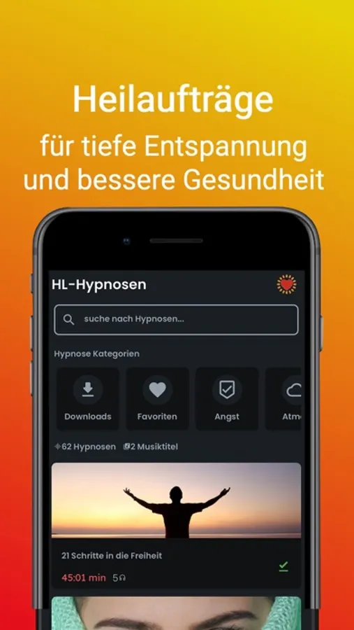 HL-Hypnosen, die einzige APP mit den echten Heilaufträgen und mit über 600 Affirmationen, die speziell für dich erscheinen.