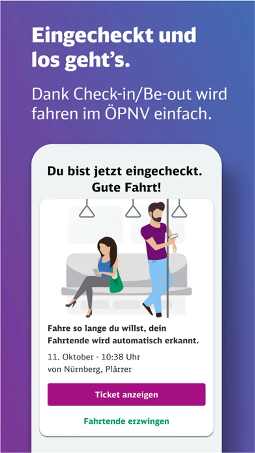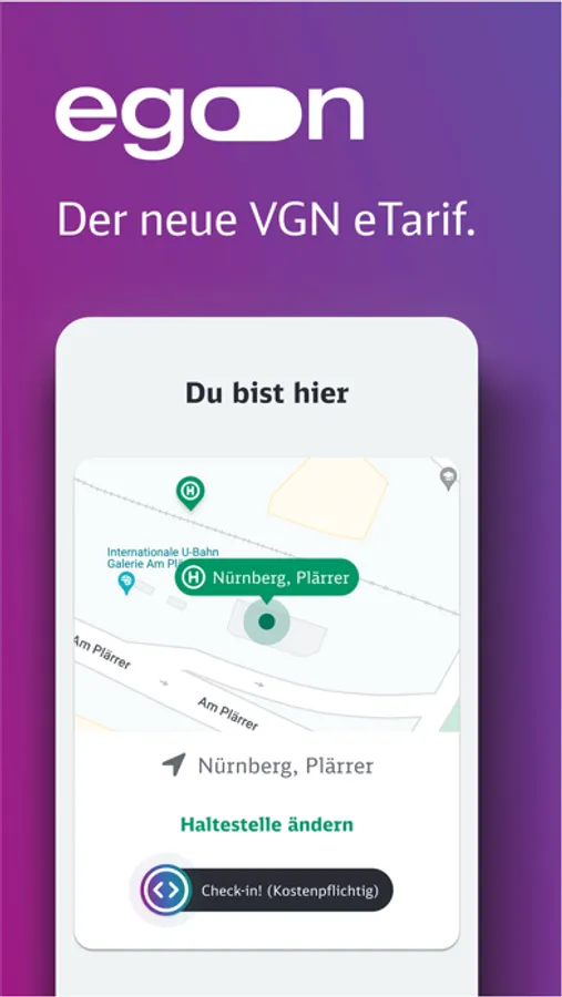 Ein Fingertipp und losfahren: egon ist der neue VGN eTarif, der die Nutzung von Bus und Bahn einfach macht. egon funktioniert ganz ohne die bekannten Fahrkarten und Preiszonen: Zum Losfahren einfach mit der egon Smartphone-App einchecken – und die Fahrt entspannt genießen.