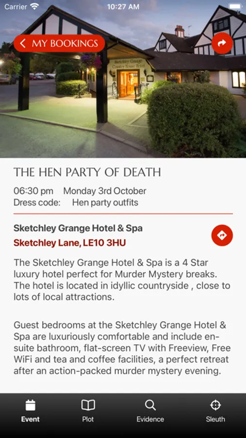 - View all your booking details; hotel location, details of the plot including any theme, location details, plus date and timings for the night’s events - we wouldn’t want you to miss out on anything!