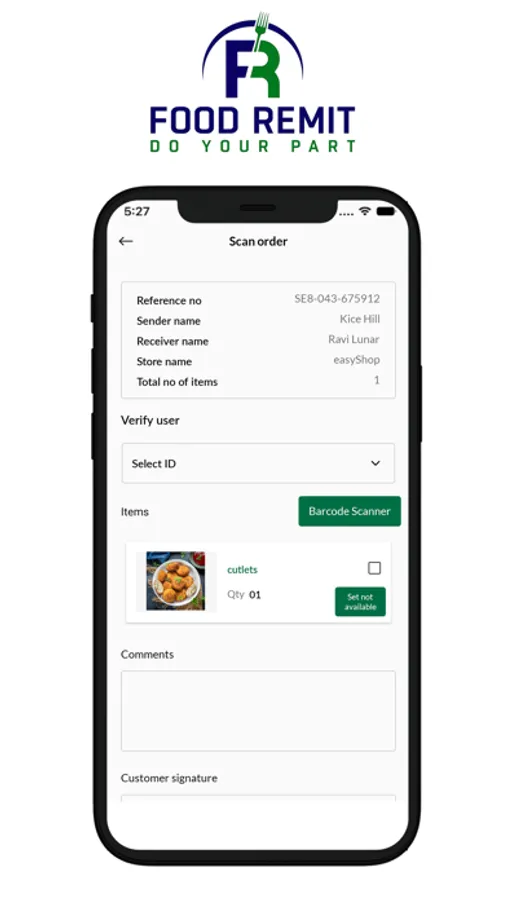 The Food Remit scanner app allows store employees to scan products to see product availability and to complete orders around the world and will enable employees and users to see the product availability for better connectivity in the future.
