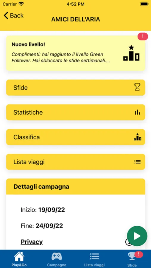 classifiche su vari periodi di gioco e vari parametri (CO2 risparmiata, chilometri fatti con diversi mezzi) per sfidare altri utenti