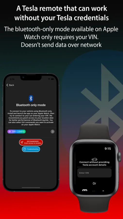 - Don"t want to enter your Tesla account details? No problem, you can have access to basic commands and your Apple Watch only using Bluetooth (on compatible models)