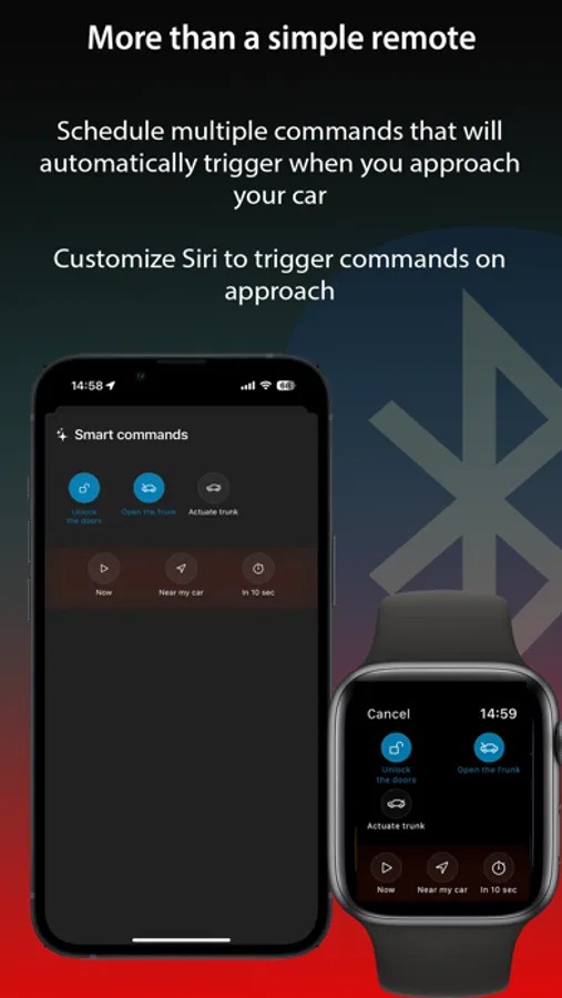 - Trigger commands automatically when you're approaching or leaving your car: for example, your trunk can automatically open or close depending on your distance to your vehicle. No more need for a foot sensor!