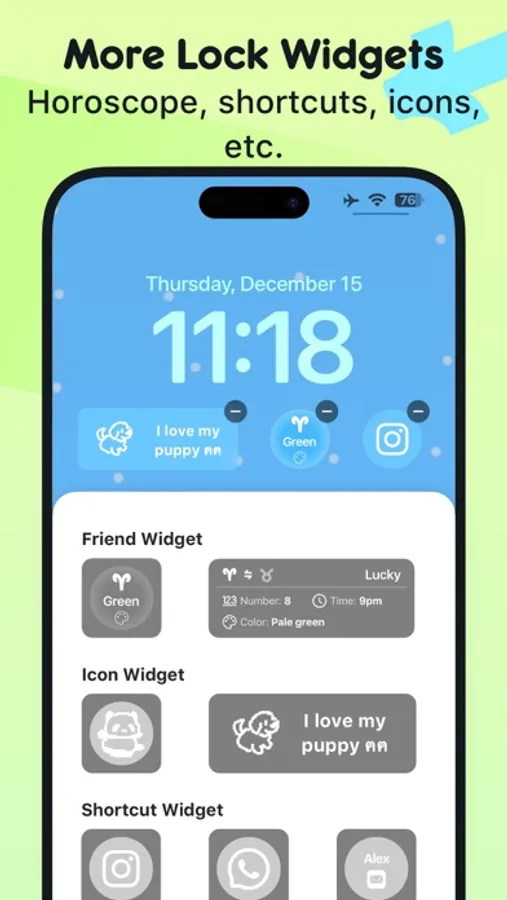 This widget enables you to send cute signals to your friends' lock and home screens. Try to surprise your friend by dropping a "bomb" or a "kiss" on their phone screens!