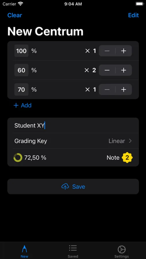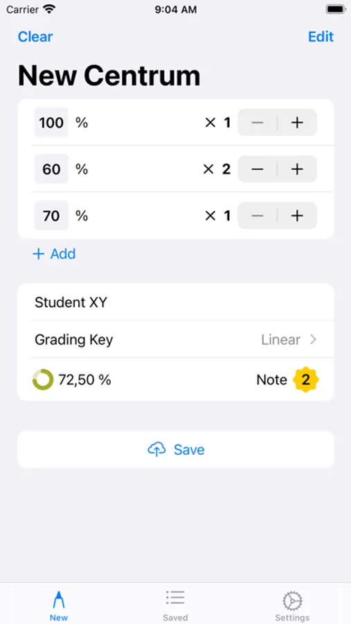 Centrum automatically computes the average of all these percentages and uses a selected grading key for the final grade.