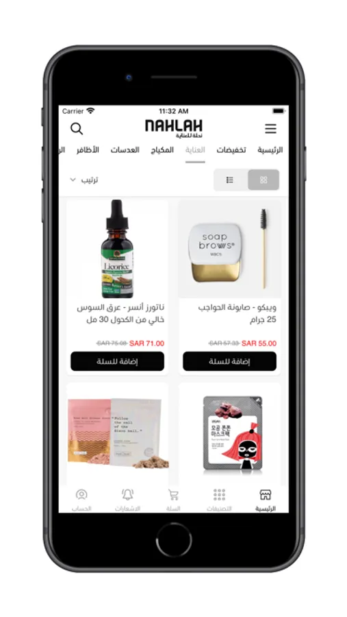 نحلة للعناية هو الخيار الأول الذي يجمع بين المنتجات الأصلية والأسعار المخفضة لبراندات التجميل والمكياج والعناية والعطور والاكسسوارات مع توصيل سريع داخل السعودية ودول الخليج، بالاضافة لللعديد من التخفيضات المتنوعة والمتجددة.