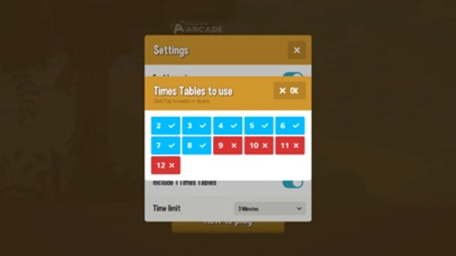In the settings, you have the ability to decide which times tables are tested meaning that the game can be tailored to the needs of the individual playing it. You can also decide how long you would like each game to run for and have the opportunity to toggle on/off the sound effects and music for a quieter classroom.