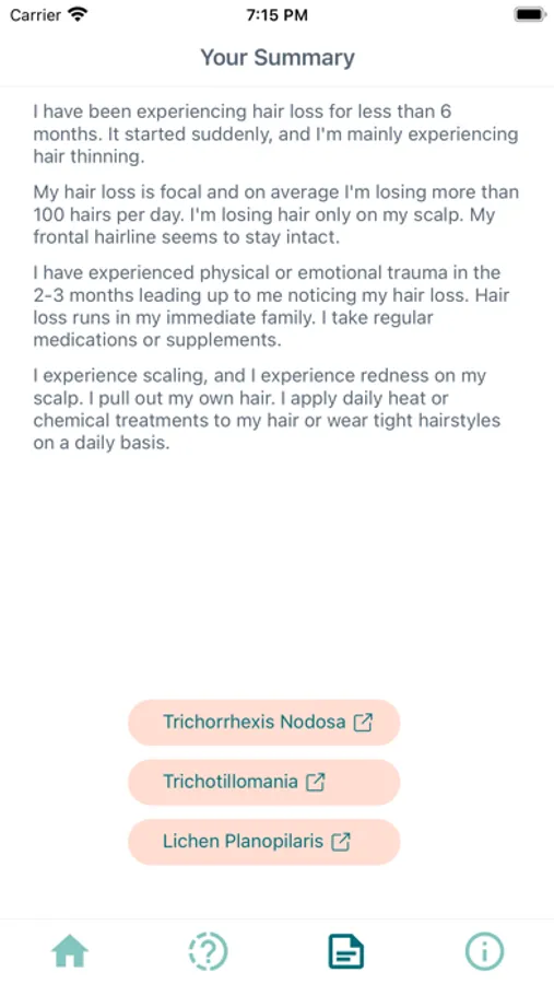 The purpose of Halo is to help you develop a better understanding of your hair loss symptoms and to narrow your search for potential causes as you work with your healthcare provider.