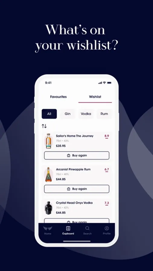 CUPBOARD: Add your most-wanted to your Wishlist, finest-flavoured spirits to your favourites and keep them all in one convenient location.