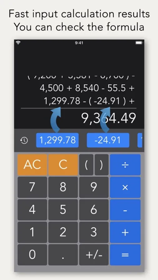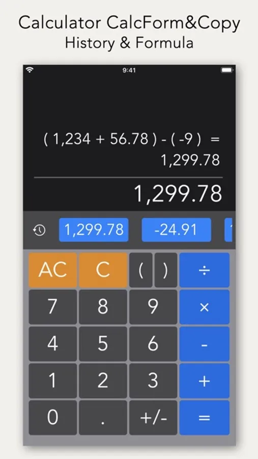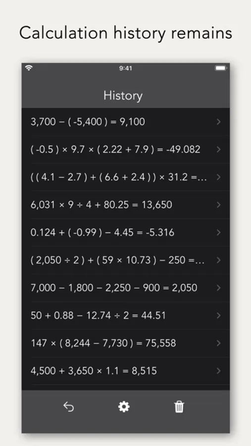 It is a simple calculator with support functions such as [calculation result input function] and [confirmation of calculation history].