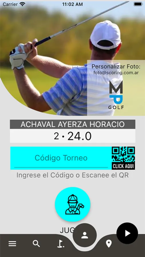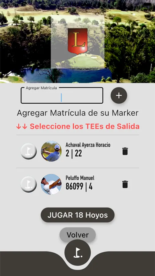 Ambas opciones acceden al menu Agregar Jugador, donde ingresara la matricula de su compañero de juego y seleccionara el tee de salida de cada uno.