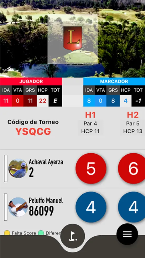 Vista completa de la Tarjeta de juego haciendo click en el nombre de cada jugador. Ahi encontrara todos los golpes y los detalles de los hoyos (como el Par, Handicap, etc).
