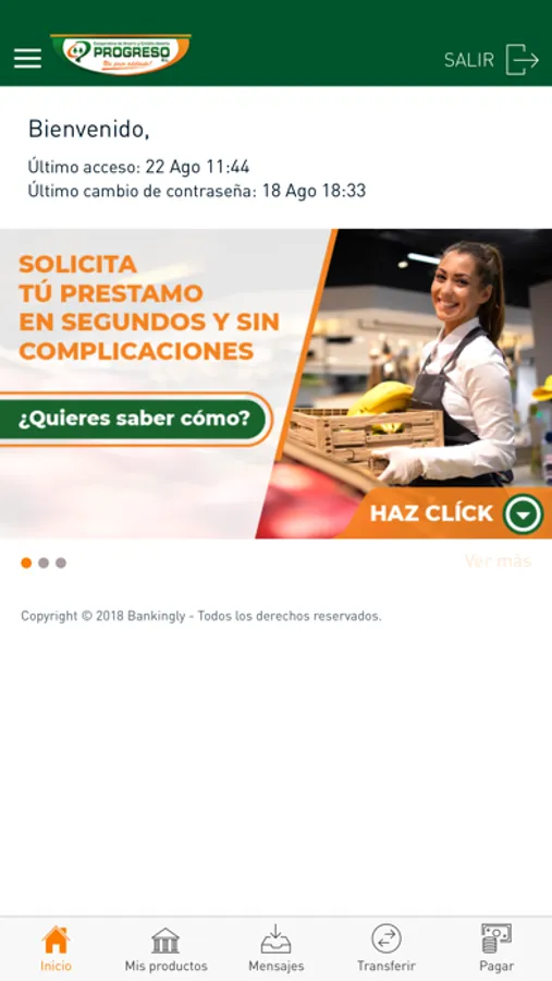 La banca móvil PROGRESONET, realiza las siguientes operaciones: Consultas y extracto de cajas de ahorro, Consulta y extracto de préstamos, transferencias entre cuentas y terceros, pago de crédito, Pagos de servicios Básicos