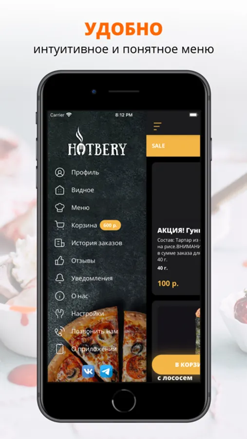 Хотбери — это удобный способ заказа еды домой или в офис! Мы готовим наши блюда из качественных свежих ингредиентов и доставляем еду быстро и бережно.