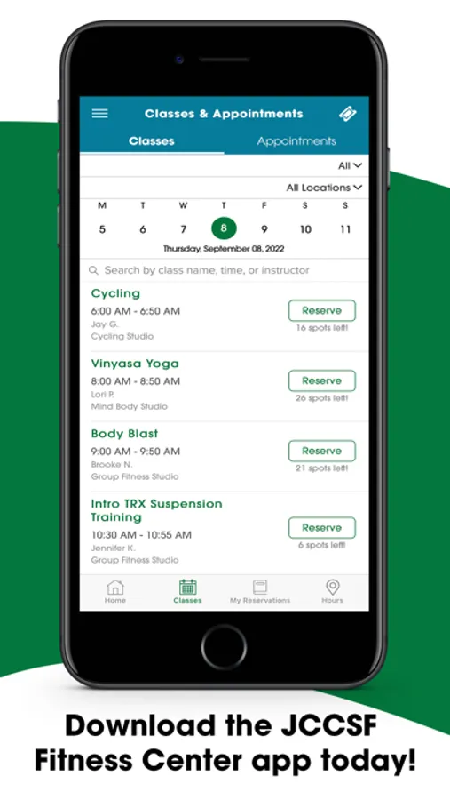 Download the JCCSF Fitness Center mobile app to register for classes, discover programs, receive alerts and push notifications, check in with your barcode and much more. Let’s get active!