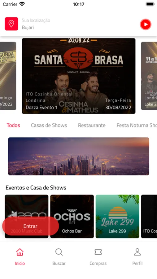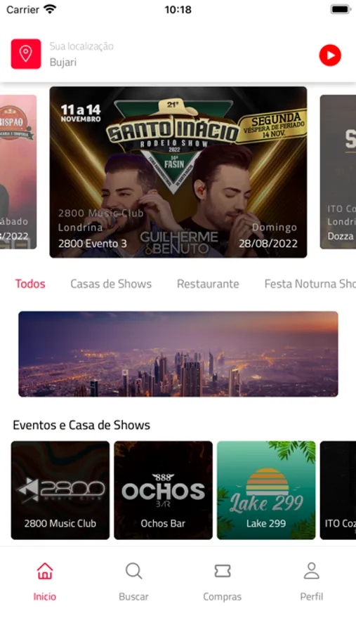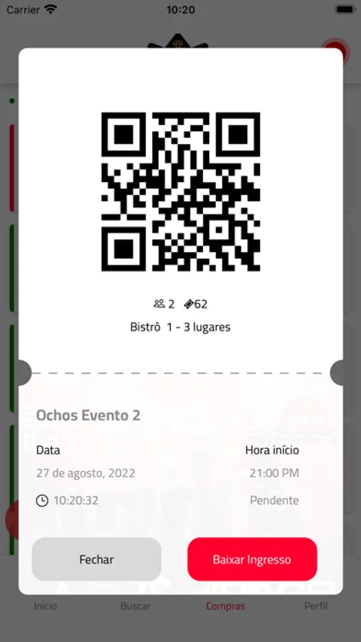 Os eventos estão divididos por região e categorias, como festas, baladas, festivais e muitos outros. Ao escolher seu evento o seu ingressos ficará armazenado em compras para efetuar o pagamento, e após pagar será gerado seu QR code para entrar no evento.