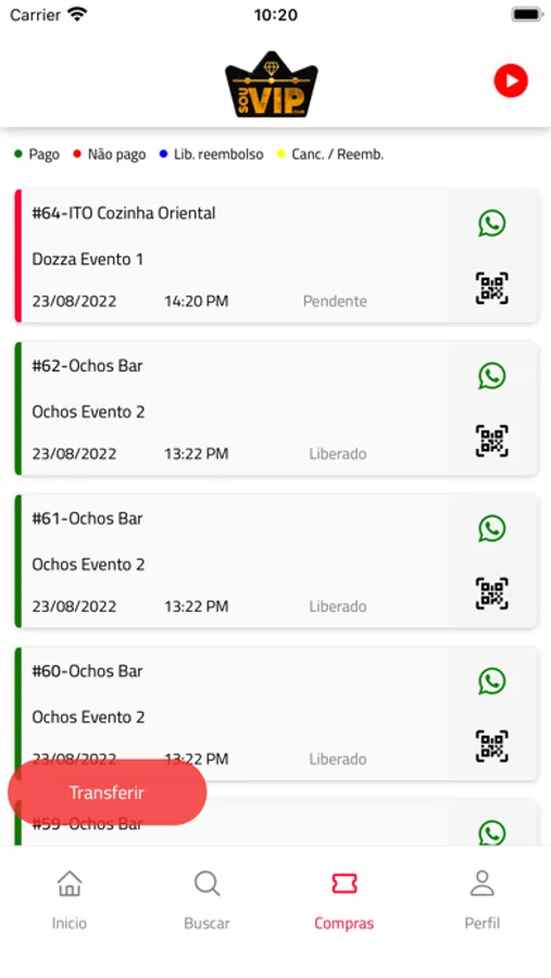 No Sou VIP é possível transferir o seu ingresso para outra pessoa usando a ID que é criado pelo site, individualmente para cada usuário. Só poderá transferir o ingresso, se já estiver pago, transferindo o destinatário receberá uma notificação e o ingresso ficará na aba compra, pronto para ser usado.