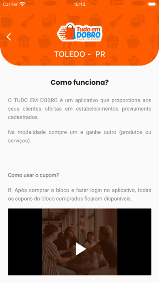O TUDO EM DOBRO é um aplicativo que proporciona aos seus clientes ofertas em estabelecimentos previamente cadastrados.