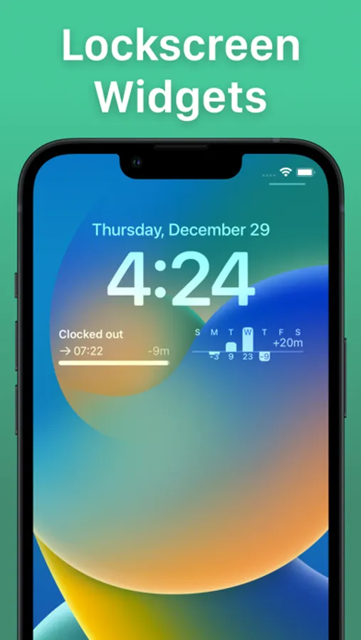 With the home and lock screen widgets you can see how much time you still have to work today. Lock screen widgets can additionally give an insight on your weekly progress.