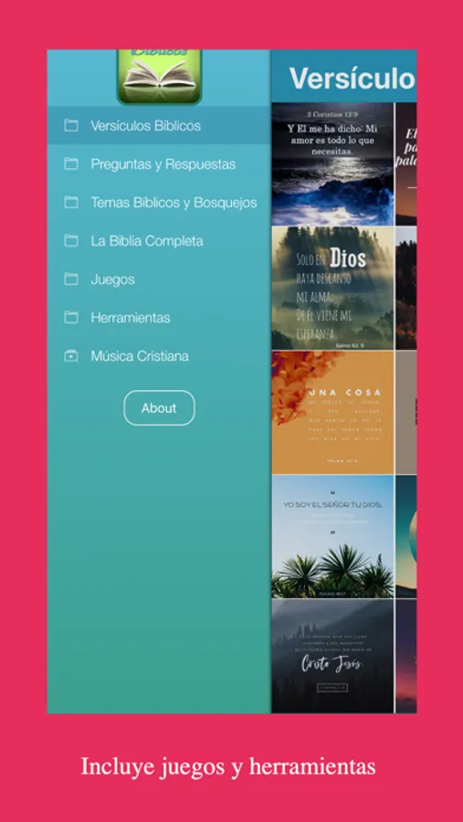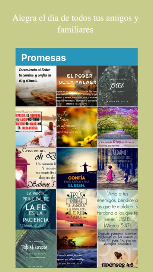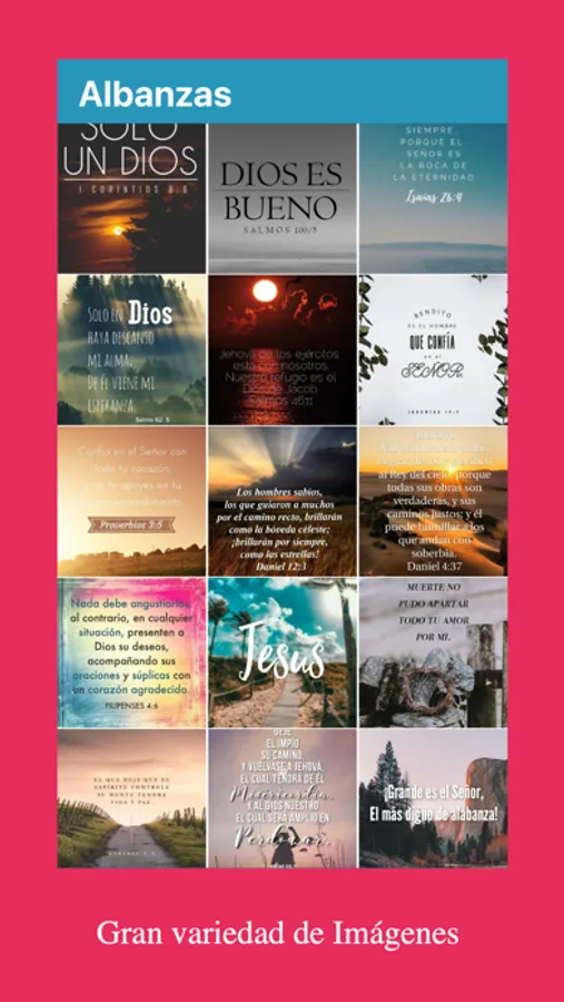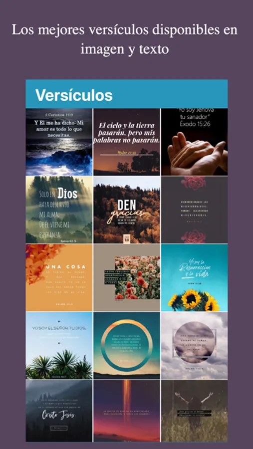 Comparte la palabra de Dios con tus amigos y familiares de forma vistosa con estos versículos bíblicos en imágenes de naturaleza y usa tu app como tu propia biblia de promesas.