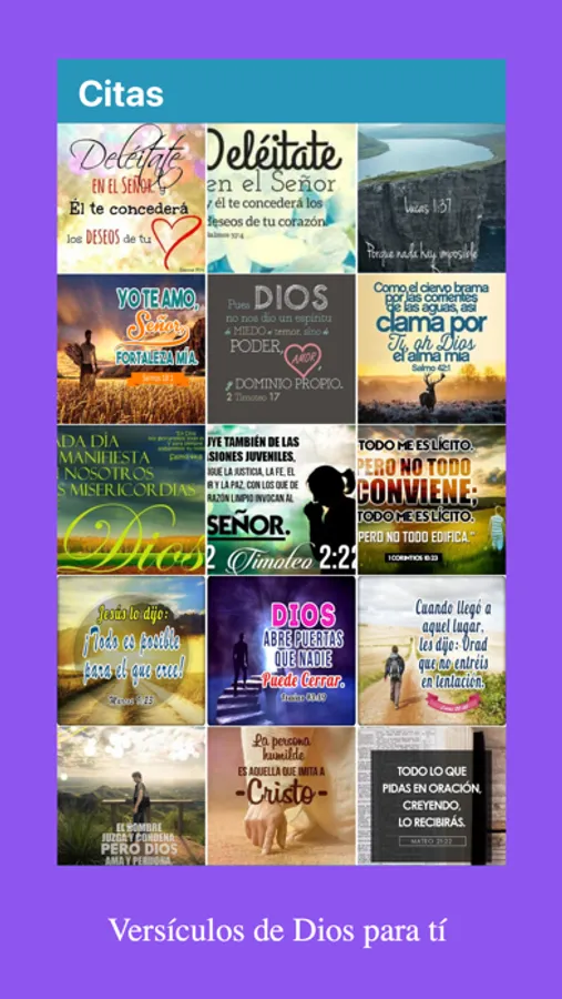 Aquí en esta aplicación tienes algunos de los muchos versículos bíblicos que encontramos en la Biblia. Léelos y medita en ellos, y verás cómo te fortalecerán y ayudarán a tener más confianza en Dios.