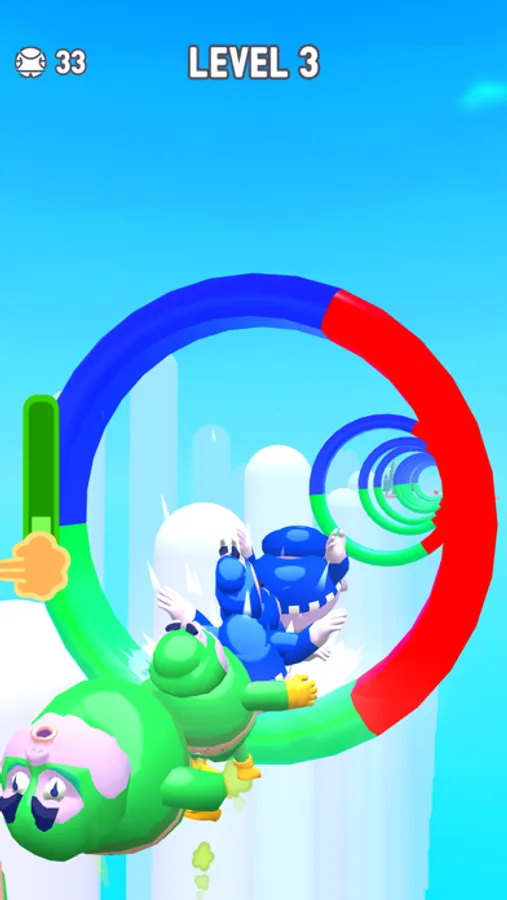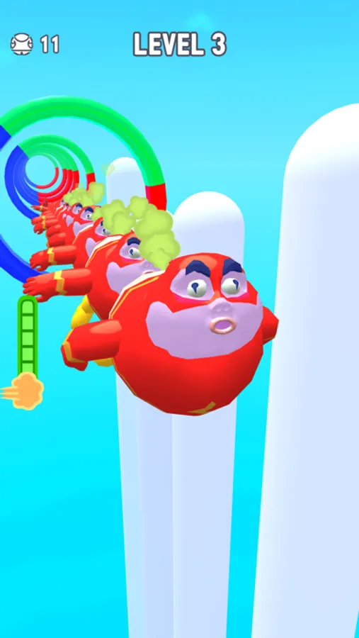Rotate the rings and match them to the correct color. Let the masked fart characters jump. Increase their numbers. If you make a jump combo, you will see a funny special mode. On each level it will be more challenging!