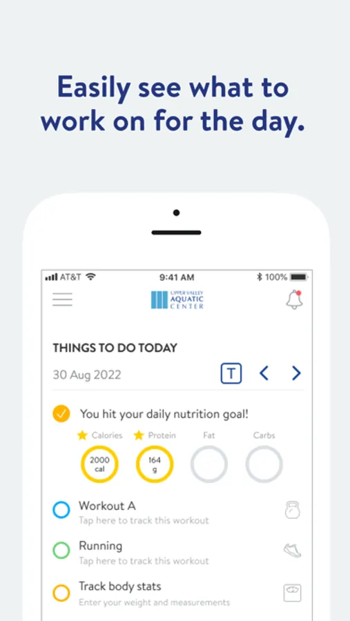 With the Upper Valley Aquatic Center App, you can start tracking your workouts, measuring results, and achieving your fitness goals, all with the help of your personal trainer.