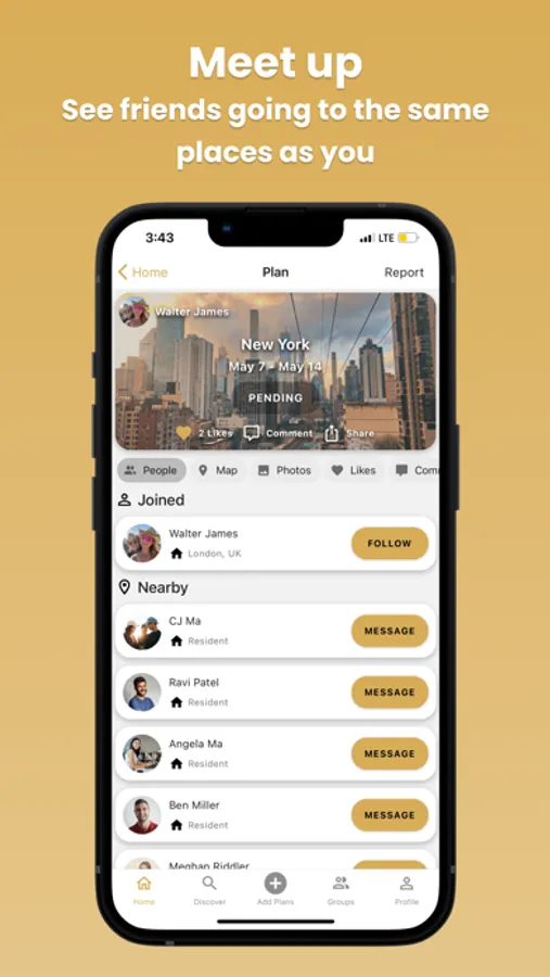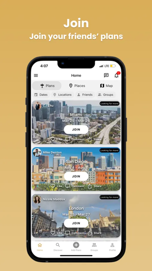 Joinstar connects you with people in your network that are traveling to the same places as you, living in the places you are traveling to, or visiting your hometown.​ With Joinstar, you will never miss out on chances to meet up with your friends again.