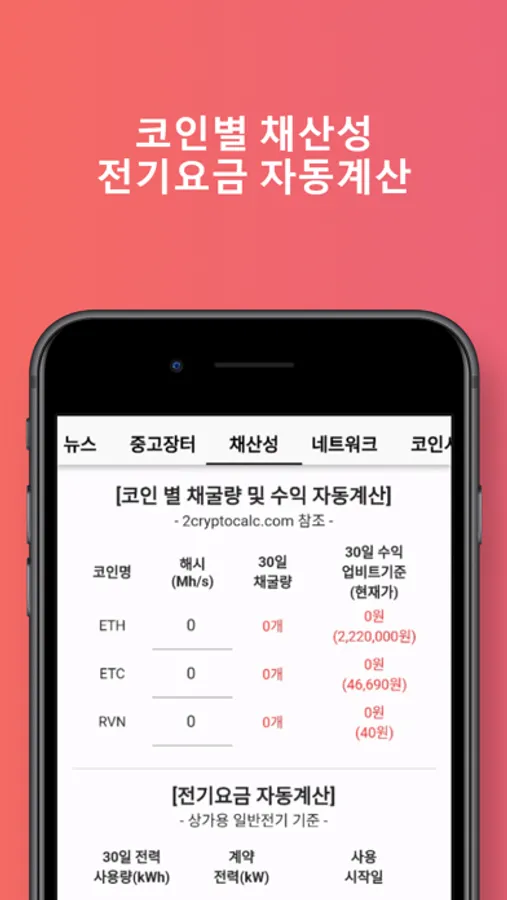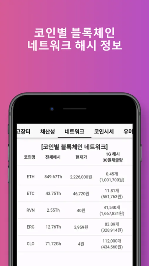 - 코인별 블록체인 네트워크 해시 정보 제공