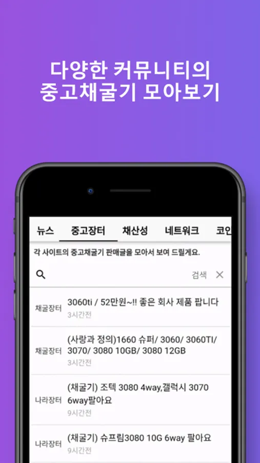 - 다양한 커뮤니티의 중고채굴기 정보 모아보기