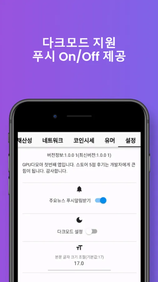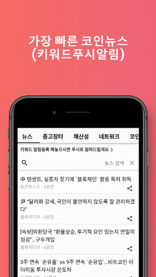 - 빠른 코인 뉴스 제공 키워드 푸시 알림 제공