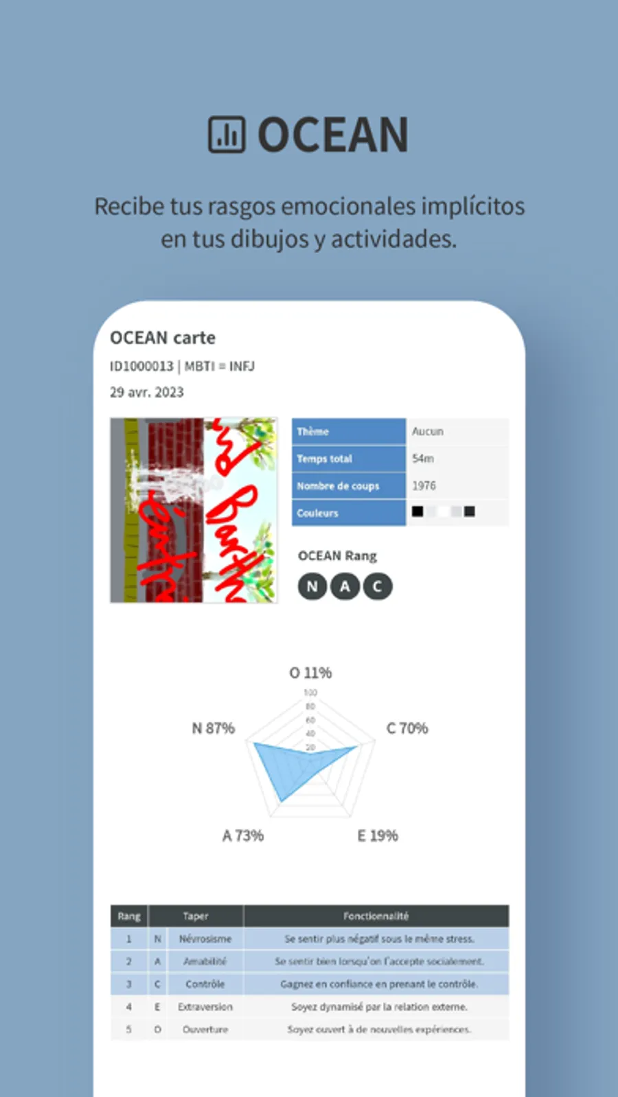 -Proporciona su índice OCEANS representado por cada uno de sus dibujos en un minuto.