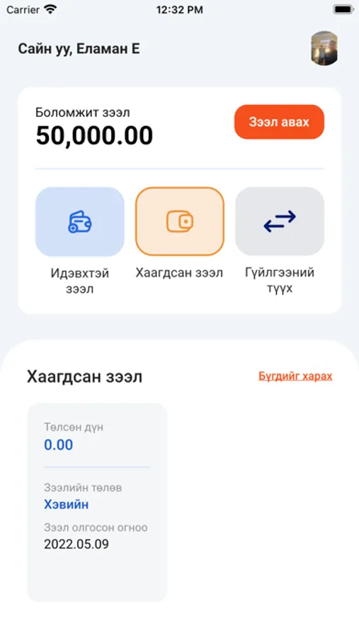 Та манай аппликейшнийг татан авч өөрийн мэдээллийг оруулснаар таны зээлийн лимит тогтох ба олон удаагийн давтамжтай үйлчилгээ авахад зээлийн эрх нэмэгдэх зэрэг олон давуу талуудыг ашиглах боломжтой