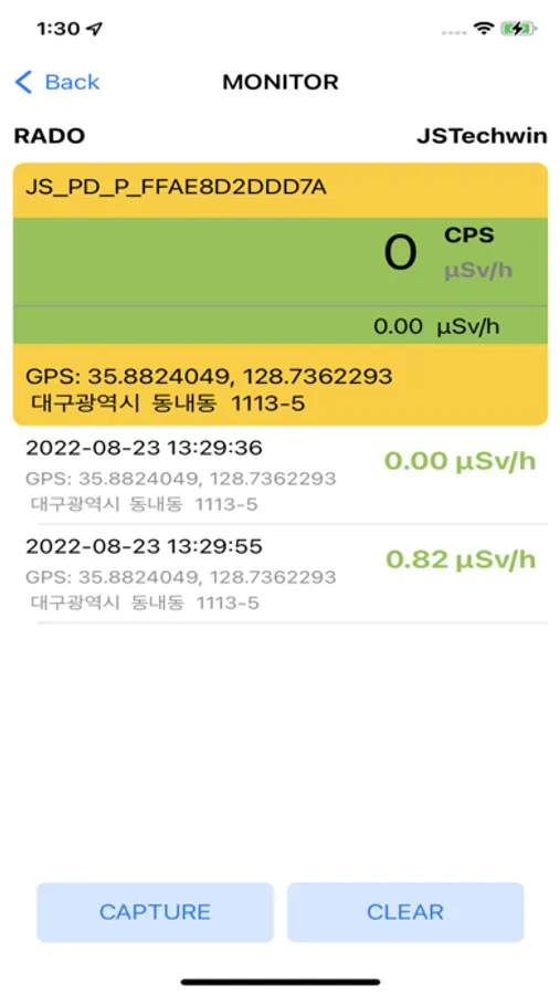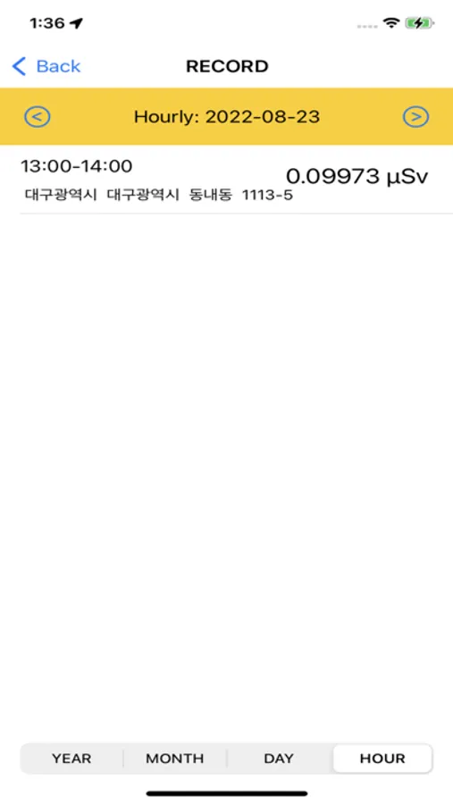 3. The measured radiation dose is stored in the internal memory of the smartphone where the App is installed along with the user's location information, and the measured radiation dose can be viewed by running it again at any time.