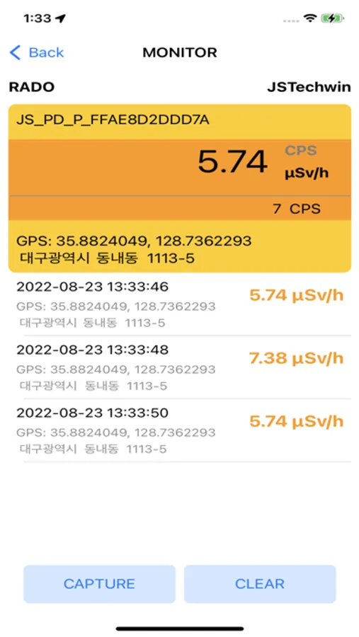 Radiation Dosimeter Monitor (hereinafter referred to as RADOM) App is an application that monitors radiation measurement values in real time by connecting to radiation detection devices developed by JS TECHWIN Co., Ltd. via Bluetooth.