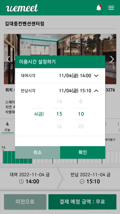 # 예약정보 : 앱으로 필요한 날짜와 시간을 선택해 간편하게 공간을 미리 예약하세요.