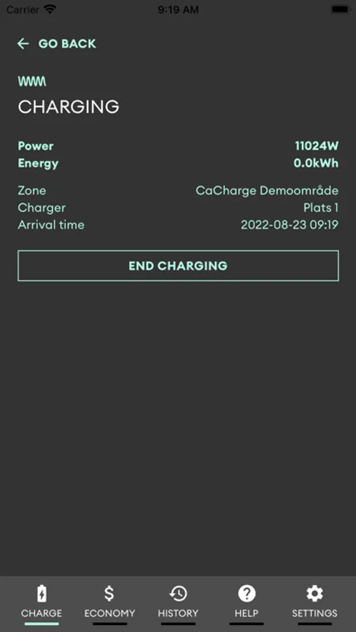* Function as a dashboard for starting and monitoring electrical charging