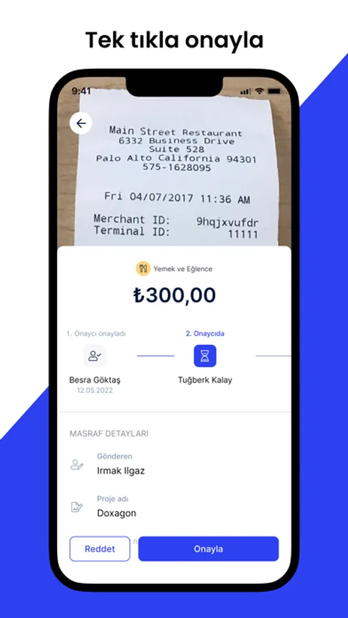 3. Onay akışının ister organizasyon ister proje bazlı esnek bir şekilde yönetilebilmesini sağlar; Şirketinizin organizasyon yapısına göre kurgulanmış onay akışı sayesinde çalışanlarınızın girişini yaptığı masraflar ilgili kişilere iletilerek onay süreci tamamlanır.