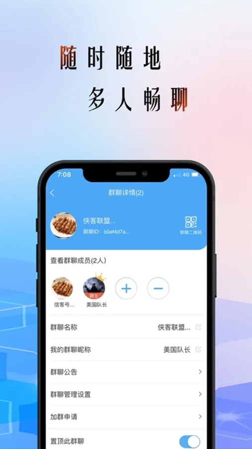 聊天群功能: 群成员保护、群员禁言、置顶群消息、支持发送图片、视频、文本等等加密传输、消息内容快速批量转发,高效解决批量消息转发问题。