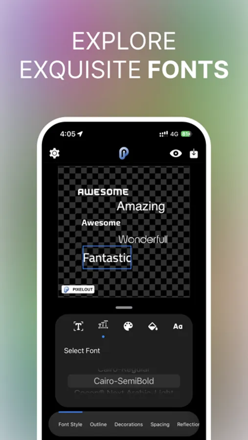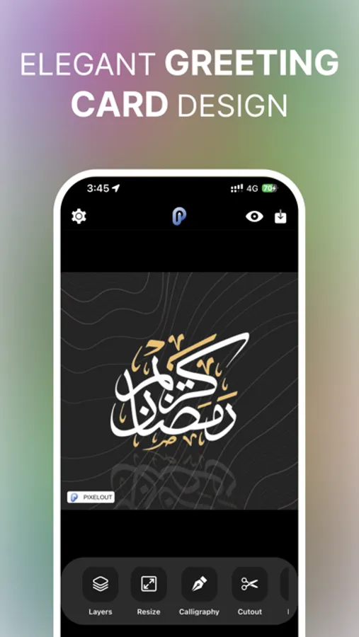 For those passionate about typography and calligraphy, "Pixelout" features an exquisite collection of Arabic and English fonts, each with its unique flair. Special calligraphy styles are available for occasions like Ramadan, Eid al-Fitr, Eid al-Adha, and more, allowing you to add a personal touch to your festive designs.