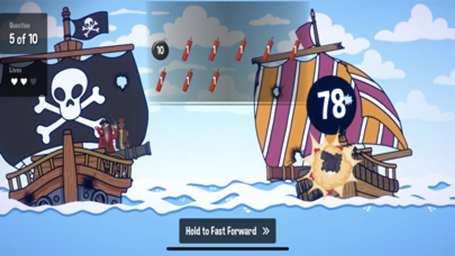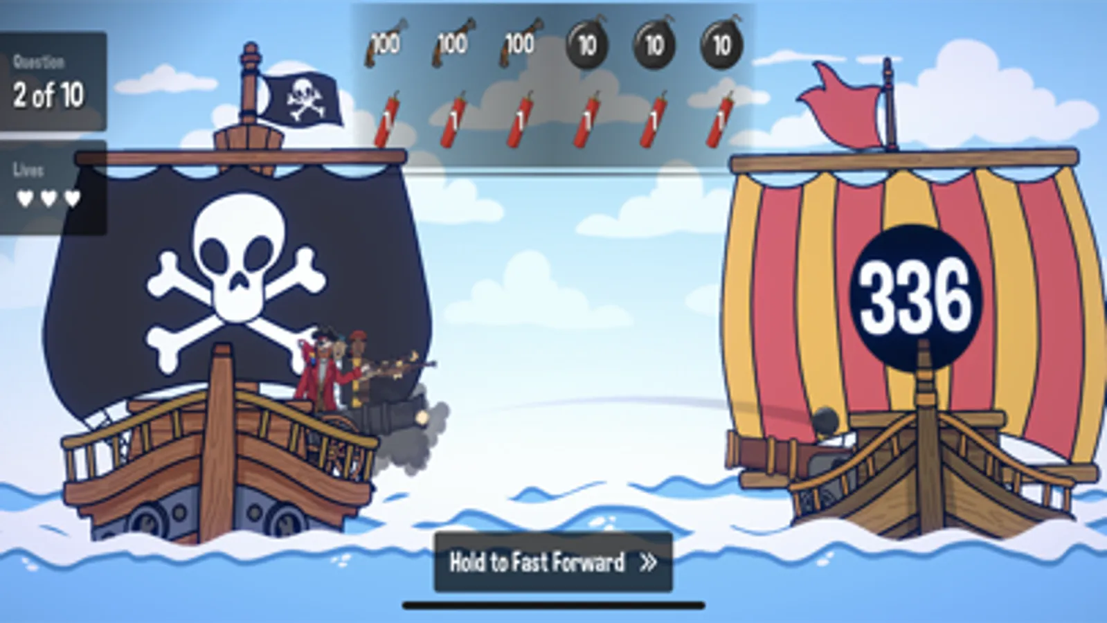 Children must defend the pirate ship and attack the enemy fleet. Each ship that appears has a value displayed on it's sail. Children need to create an attack sequence using weapons that represent hundreds, tens and ones. Once the child has created their attack they can watch the action unfold with the fun animations and sound effects.