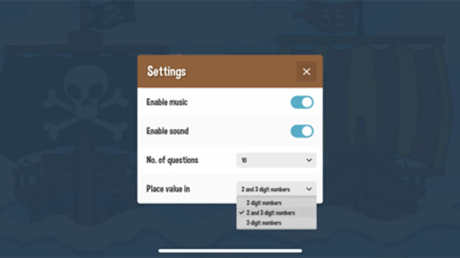 The game's settings menu allows you to enable or disable music, sound effects and change the number of questions to answer. You can choose between 5, 10 or set your own limit with the unlimited option and end the game when you choose to. You can also choose whether you want to play the game with 2 digit numbers, 3 digit numbers or a combination of both.
