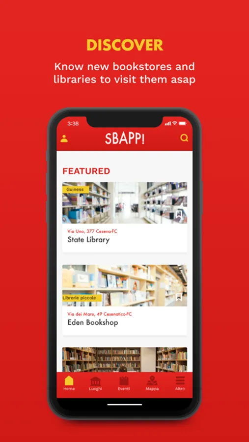 SBAPP refers to the role played by bookstores and libraries, physical or virtual places full of books. This app aims to connect all these locations in our territory, in order to help readers, not readers and tourists to get in touch with places which aren’t mere commercial establishments or book preservation institutions, instead venues where events and projects can be discovered. SBAPP will be constantly enriched with new contents: new titles, booksellers and librarians’ advices, selected bibliographies. The great world of literature at hand. The app can be downloaded for free, and it will be accessible to everyone, in order to make citizens more attentive and readers strong and inquisitive.
