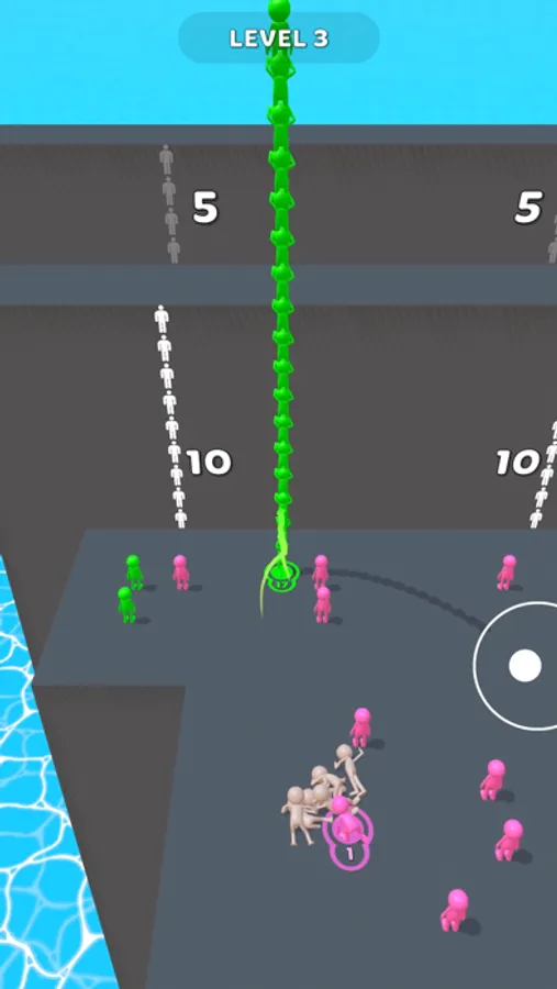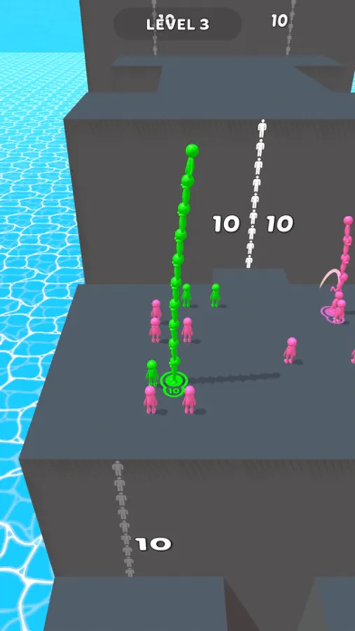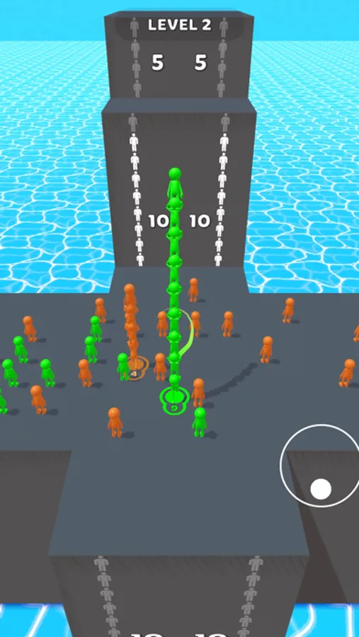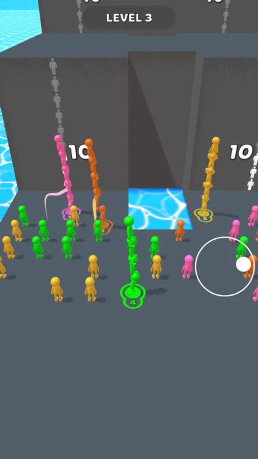 - Stack the right number of man of the same color to reach the next floor.