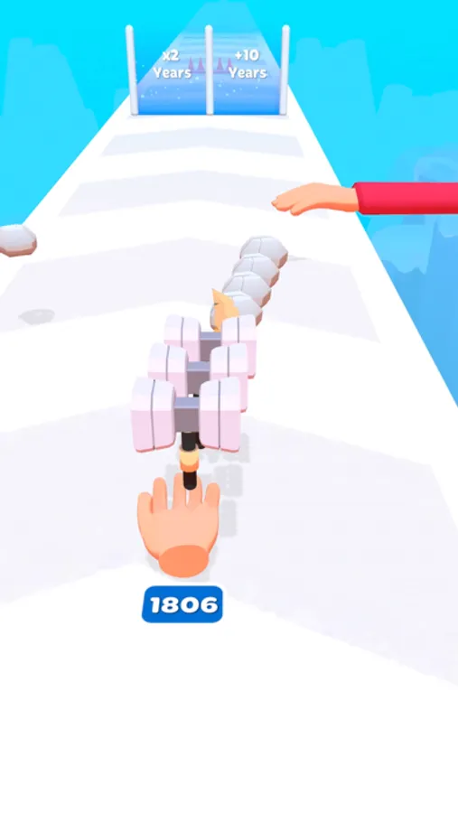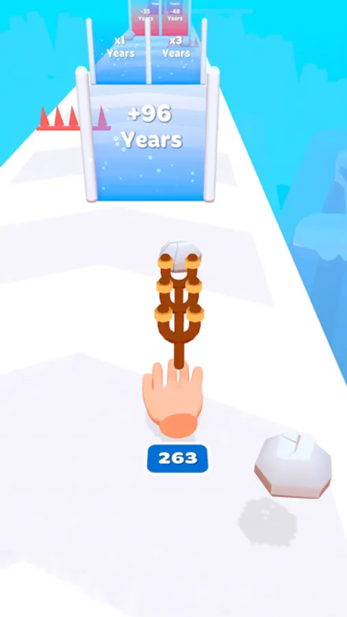 - Collect stones and upgrade them through centuries by going through doors.