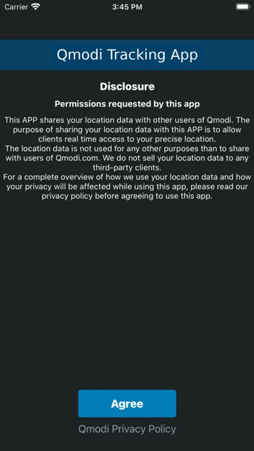 The Qmodi Tracking app enables location sharing with trusted clients.