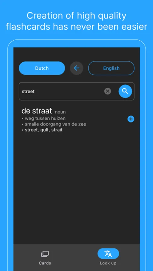 - Reverse Translation: Search for a word in the language you already know, and witness as the app creates a proper flash card in the language you're learning. This unique feature eliminates language barriers, enabling seamless vocabulary acquisition and retention.