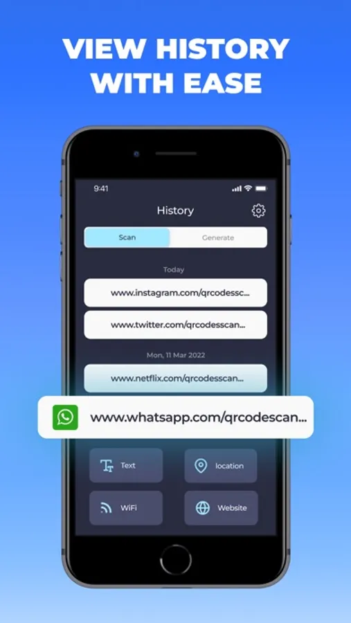 QR Code Generator & Scanner is an efficient application designed for mobile devices that allows you to create, scan and decode QR codes and barcodes. The app features a simple and user-friendly interface that makes it easy for anyone to use. Using your phone's camera, you can quickly scan a variety of 2D barcodes, including QR codes, Datamatrix codes, UPC codes, and many others. The app can recognize and decode even the most complex codes in just a matter of seconds, making it a powerful tool for anyone who needs to scan codes on the go.